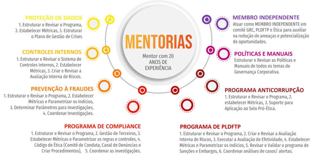 A mentoria da Calori Compliance é personalizada e a experiencia prática em processos de implementação, além de incorporar a experiência em área comercial em instituição financeira de Angelo Calori, o que auxilia substancialmente na busca de soluções viáveis ao mesmo tempo que na construção de argumentos com as áreas de negócios. Elas se baseiam na combinação entre experiências práticas, em análises de casos reais, em metodologias inovadoras.